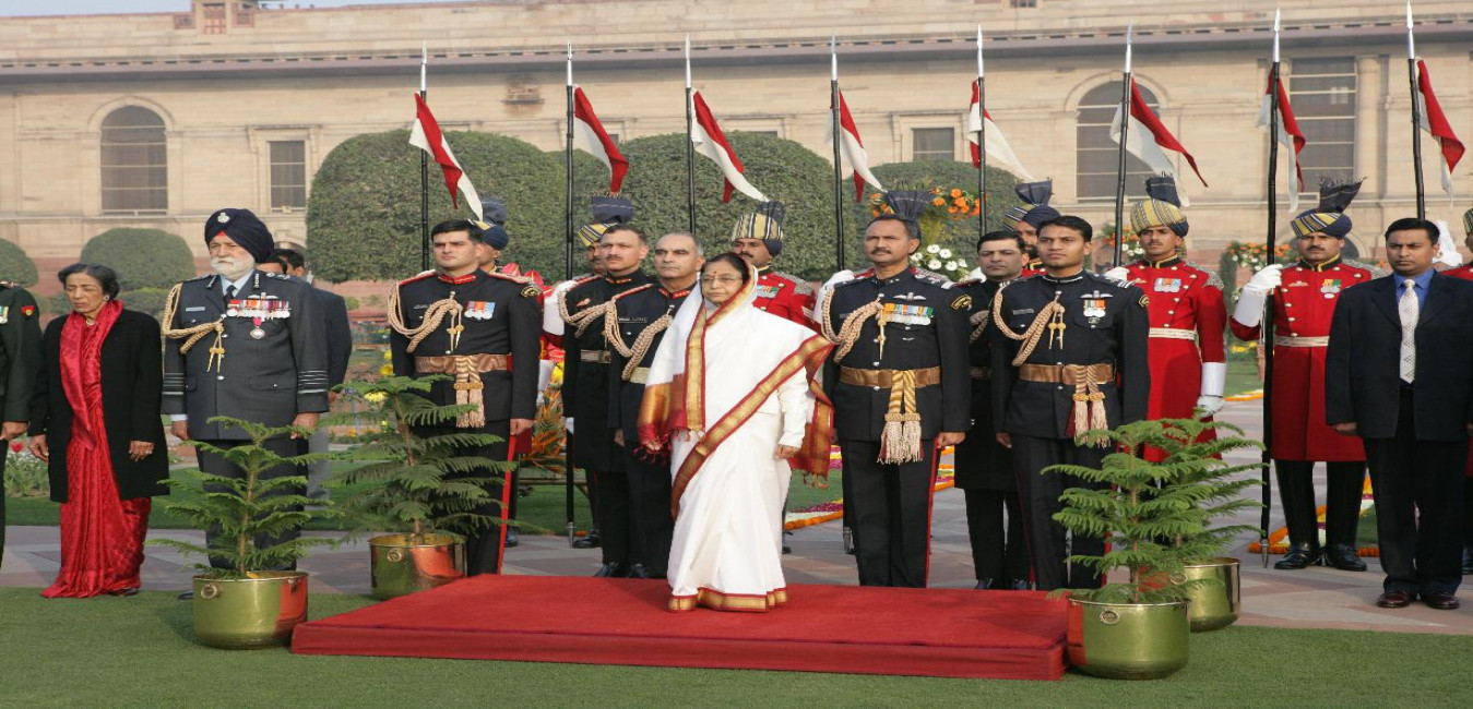 The PBG presenting the National Salute to the President of India, Smt Pratibha Devisingh Patil at Rashtrapati Bhavan in New Delhi on Jan 29, 2010