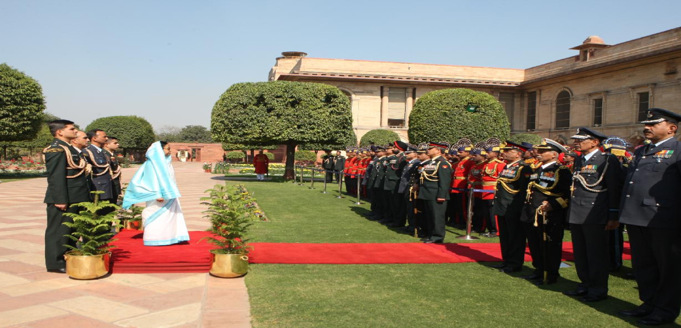 The President of India, Smt Pratibha Devisingh Patil taking the Salute at the Republic Day Parade 2009 and presenting the gallantry award at Rashtrapati Bhavan in New Delhi on Jan 26, 2009
