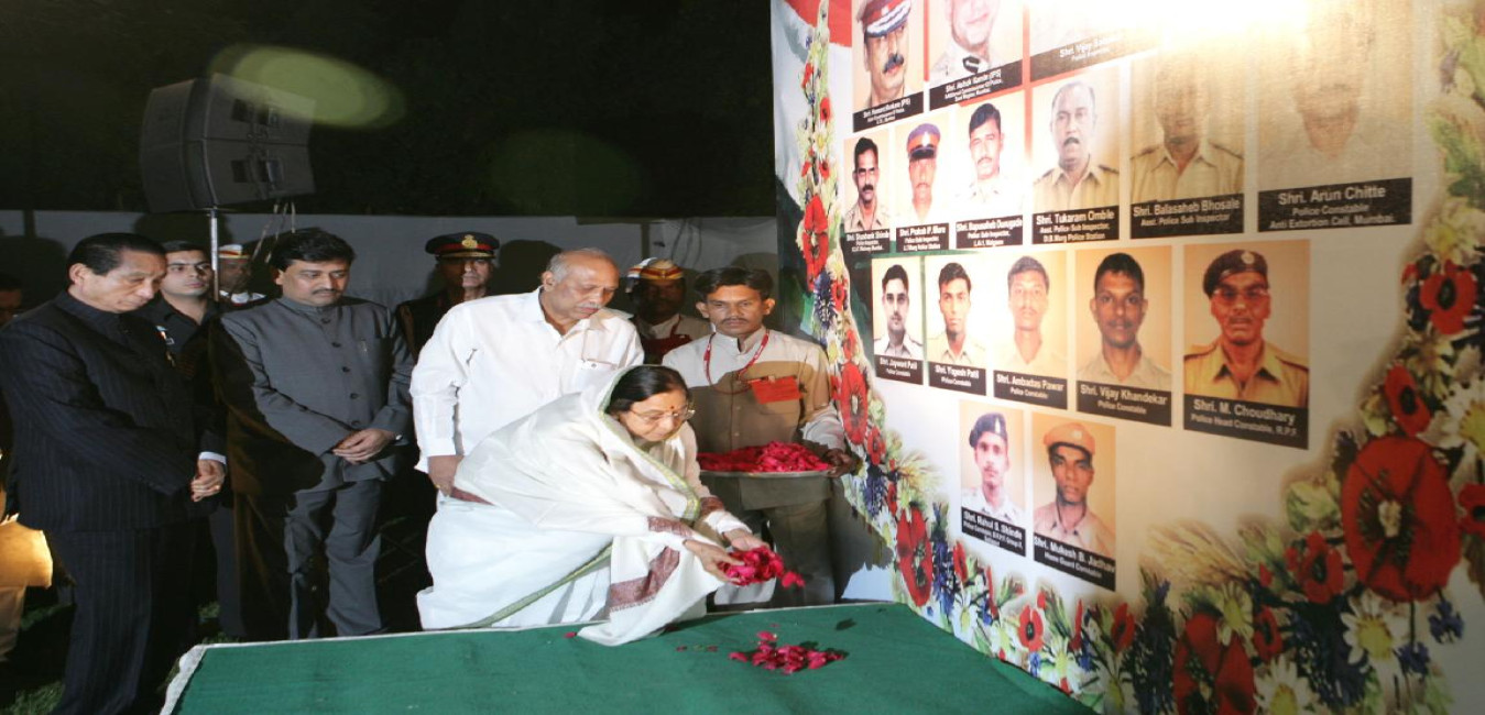 The President of India, Smt Pratibha Devisingh Patil paying homage to the Martyrs of the Mumbai Attack at Nagpur Raj Bhavan in Maharashtra on Dec 26, 2008