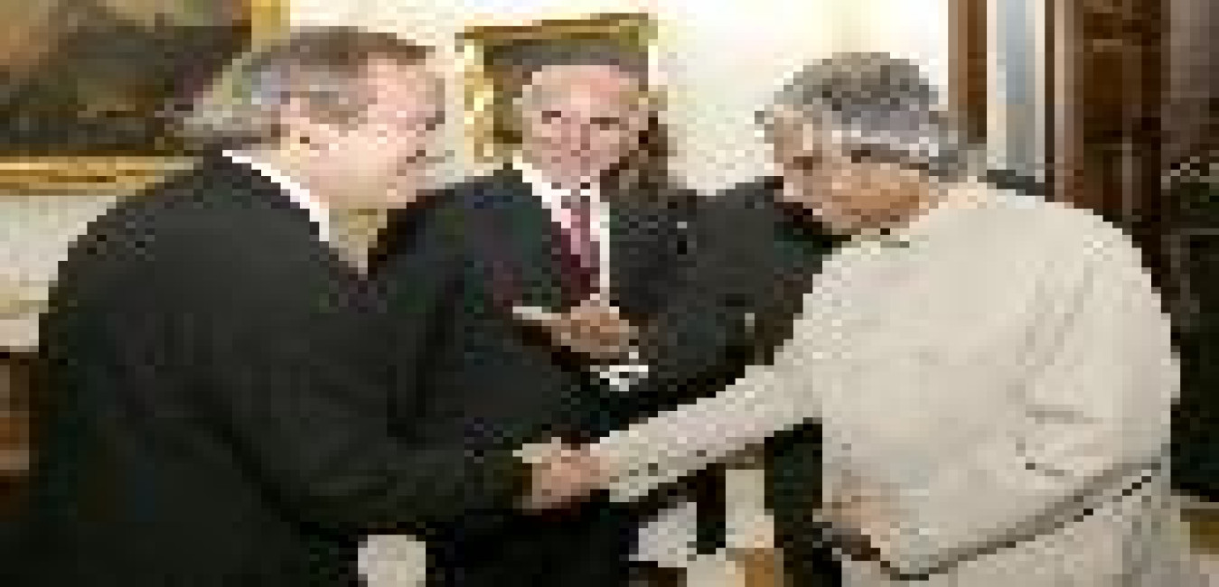 The President of India, Dr A P J Abdul Kalam interacting with Dr Robert S Zeigler, Director General & Dr K Otsuka, Chair Board of Trustees, International Rice Research Institute (IRRI), Manila, Philippines and Shri J K Ladha, IRRI Representative in India at Rashtrapati Bhavan in New Delhi on Oct 10, 2006