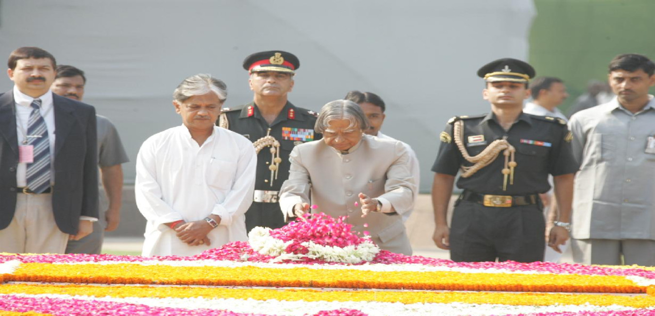 The President of India, Dr A P J Abdul Kalam paying homage to Shri Lal Bahadur Shastri on the occasion of his 102th Birth Anniversary at Vijay Ghat in New Delhi on Oct 02, 2006
