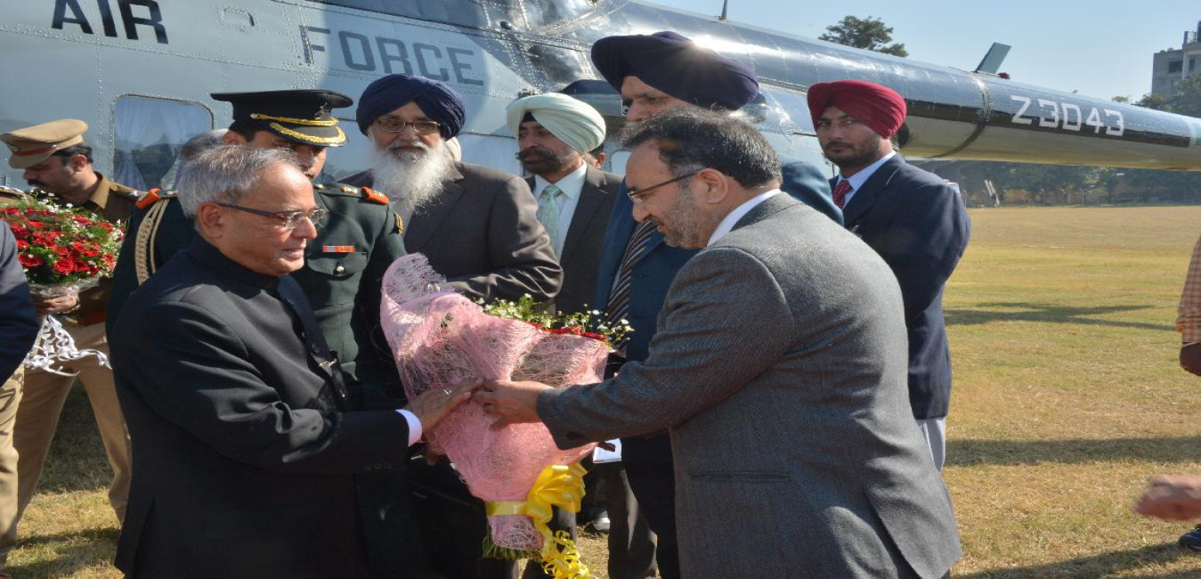 The President of India, Shri Pranab Mukherjee arriving at PAU Grounds Helipad on November 27, 2012