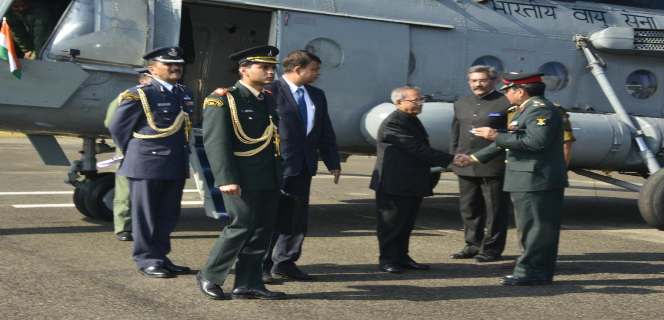 The President of India, Shri Pranab Mukherjee Arriving at Raiwala Army Helipad on Dec 09, 2012