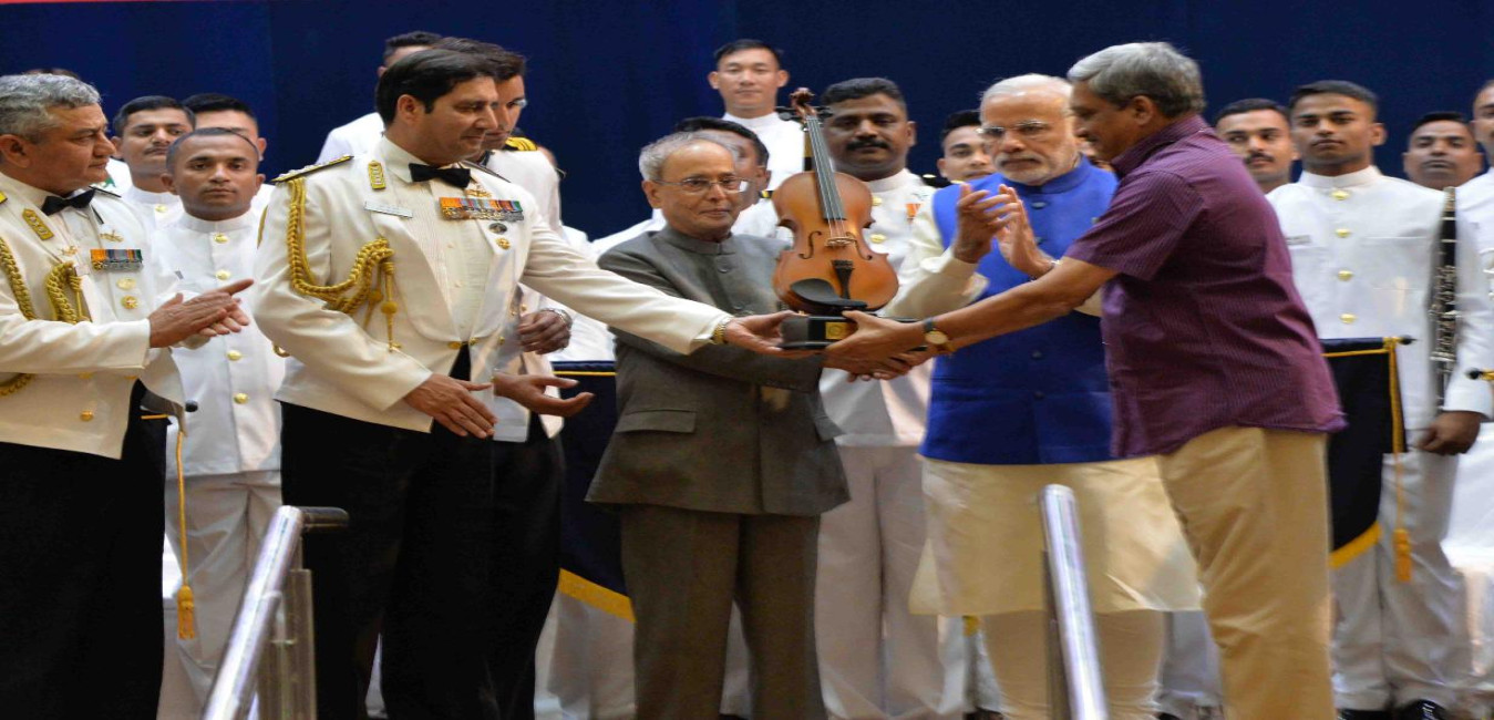 The President of India, Shri Pranab Mukherjee witnessing the Naval Band Concert and felicitating Band Master, on the occasion of International Fleet Review 2016, at Visakhapatnam, in Andhra Pradesh on February 06, 2016.