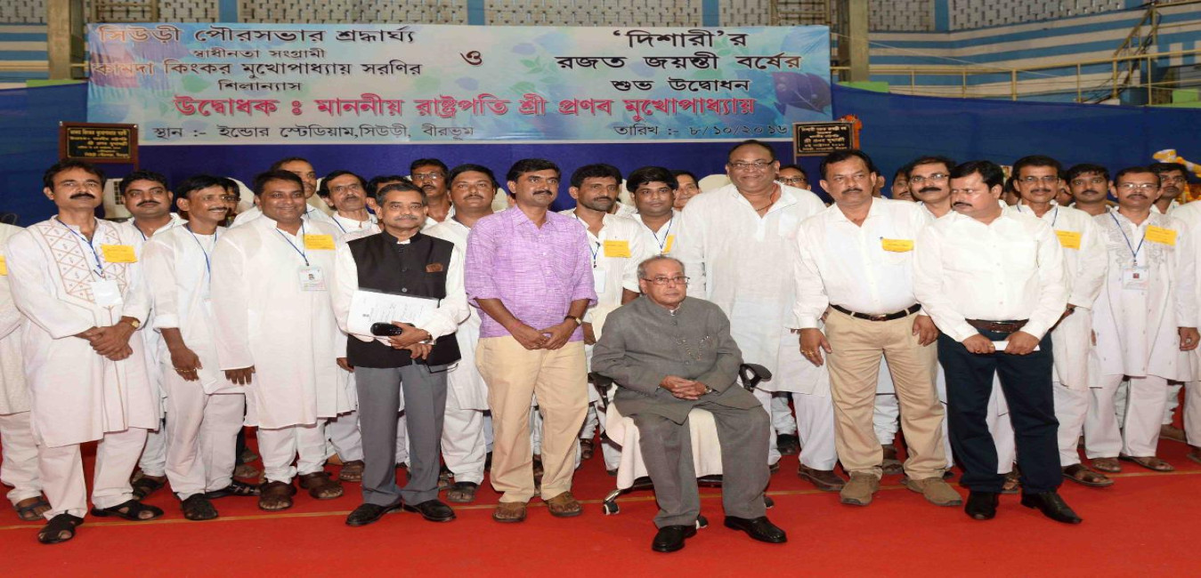 The President of India, Shri Pranab Mukherjee inaugurating the Kamoda Kinkar Mukhopadhyay Sarani (a street named after his father, a renowned freedom fighter) and the Silver Jubilee Celebrations of Dishari Club, at Suri, District Birbhum in West Bengal on October 08, 2016.