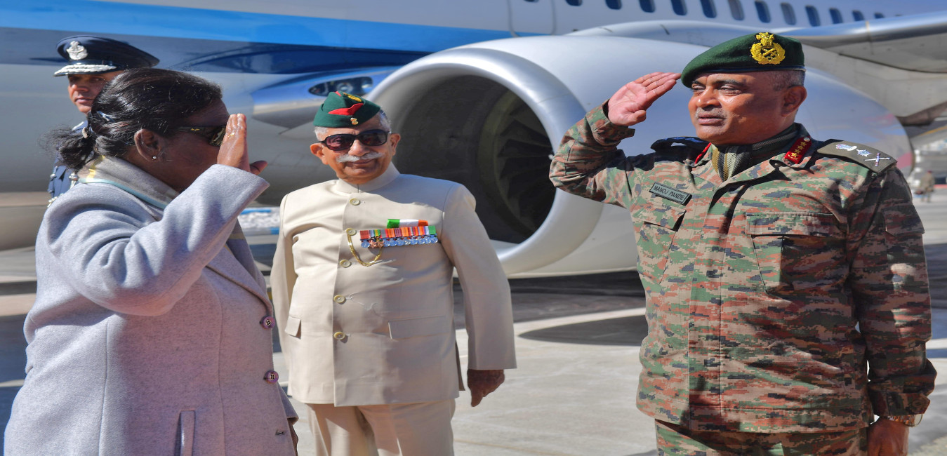 The Lt. Governor of Ladakh, Brig. (Dr.) B.D. Mishra (Retd) and the Chief of the Army staff of the Indian Army, General Manoj Pande received the President of India Smt. Droupadi Murmu on her arrival at Leh, Ladakh on October 31, 2023.