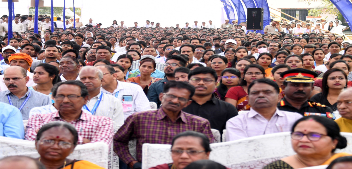 The President of India, Smt Droupadi Murmu addressed a meeting of Mahima Cult at Mini Stadium, Sambalpur, Odisha on March 2, 2024.