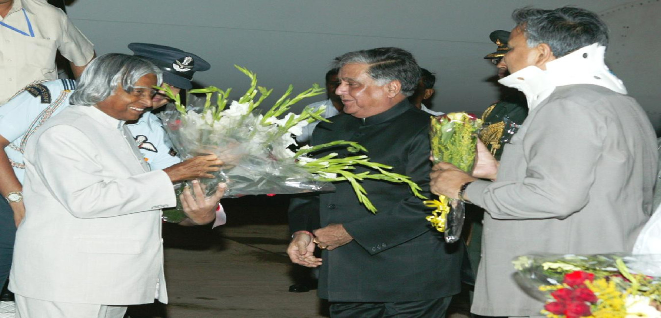 The President of India, Dr A P J Abdul Kalam being welcomed by the Governor of Andhra Pradesh, Shri Surjit Singh Barnala at Hyderabad Airport in Andhra Pradesh on July 14, 2004