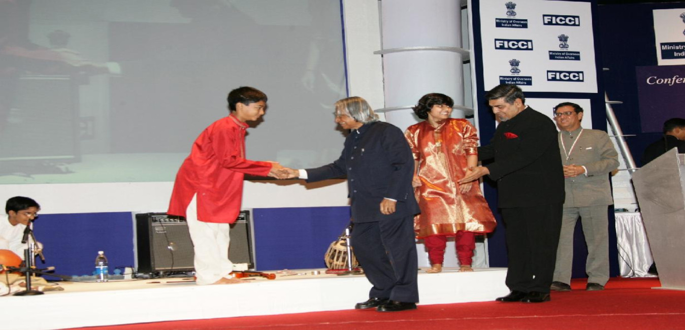 The President of India, Dr A P J Abdul Kalam presenting the Sardar Vallabhbhai Patel Vishwa Pratibha Award Instituted by the Vishwa Gujarati Samaj to Shri Sam Pitroda at Mumbai in Maharashtra on Jan 09, 2005