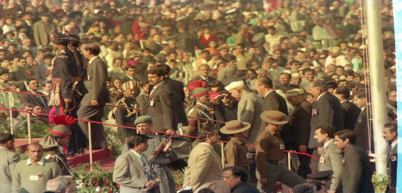 The President of India, Dr. Shankar Dayal Sharma alongwith H.E. Mr. Goh Chok tong, Prime Minister of Singapore witnessing the Republic Day at Rajpath in New Delhi on January 26, 1994.