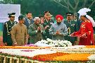 The President of India, Shri K R Narayanan paying homage to the Father of the Nation, Mahatma Gandhi at Rajghat in New Delhi on Jan 30, 1998