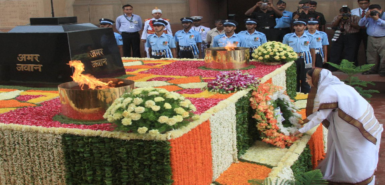 The President of India, Smt Pratibha Devisingh Patil paying tributes at the Amar Jawan Jyoti on the occasion of 63rd Independence Day at India Gate in New Delhi on Aug 15, 2009