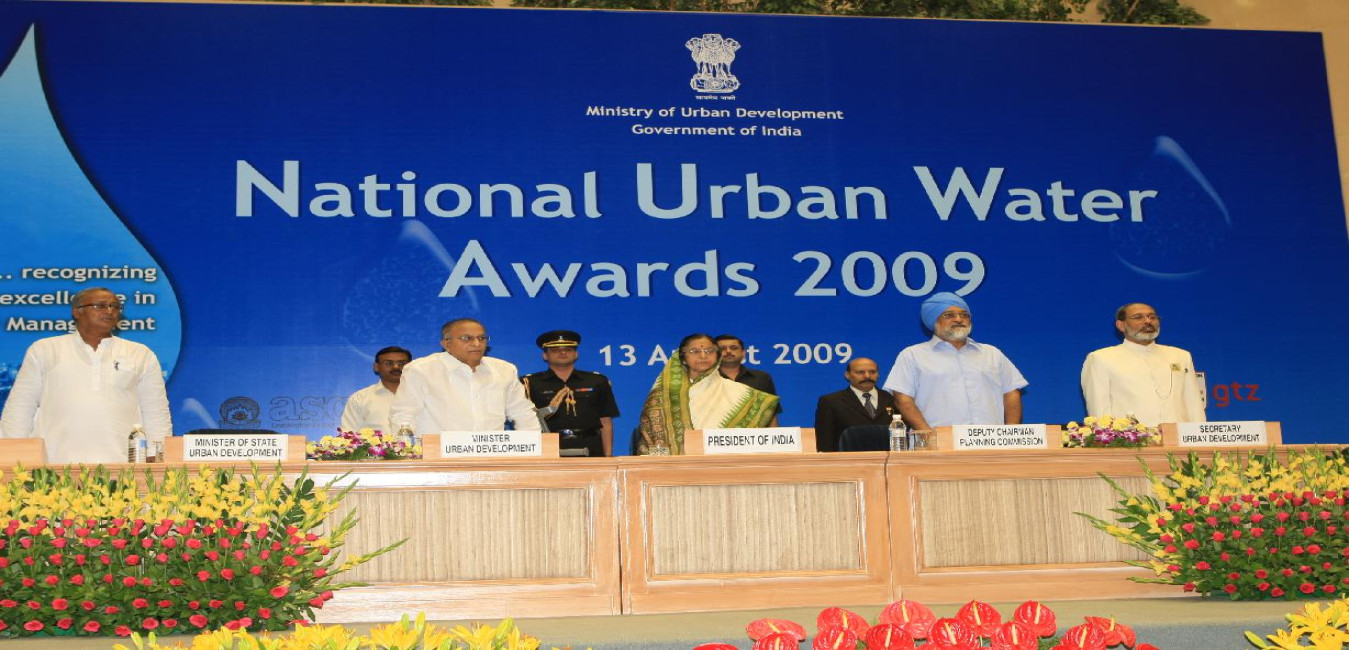 The President, Smt Pratibha Devisingh Patil presenting the National Urban Water Awards 2009 at Vigyan Bhavan in New Delhi on Aug 13, 2009