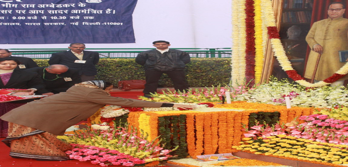 The President of India, Smt Pratibha Devisingh Patil offering floral tributes at the statue of Baba Saheb Dr B R Ambedkar on the occasion of his Mahaparinirvan Diwas at Parliament House in New Delhi on Dec 06, 2010