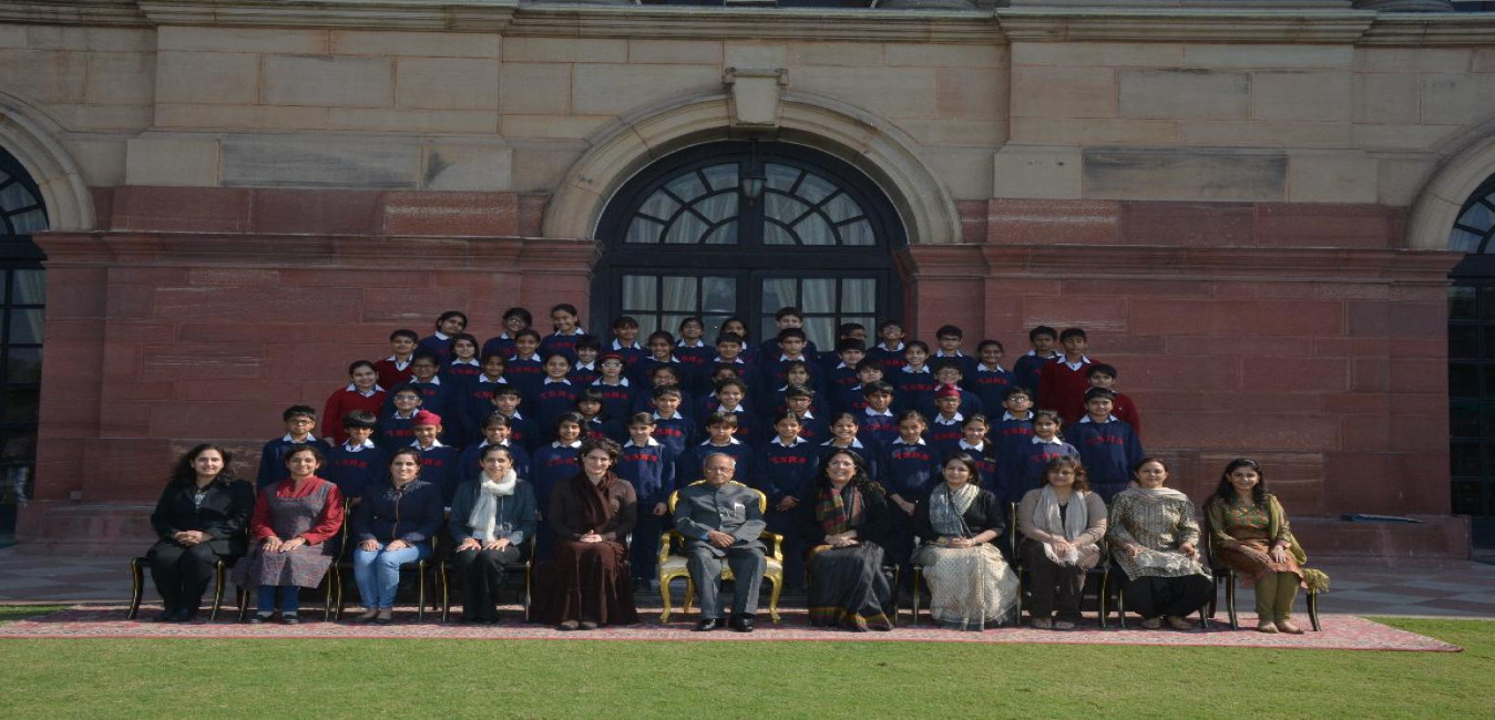 The President of India, Shri Pranab Mukherjee with Priyanka Gandhi and Students from The Shri Ram School, Vasant Vihar on November 26, 2012