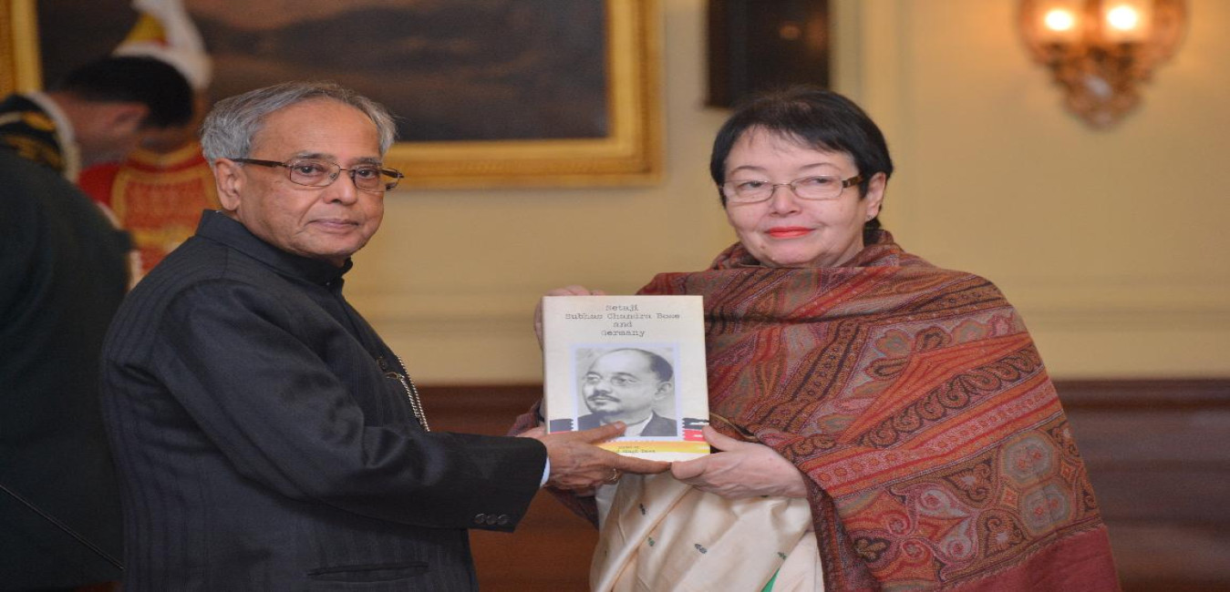 The President of India, Shri Pranab Mukherjee Receiving "Netaji Subhas Chandra Bose and Germany" Book by Professor Anita B Pfaff on Feb 06, 2013