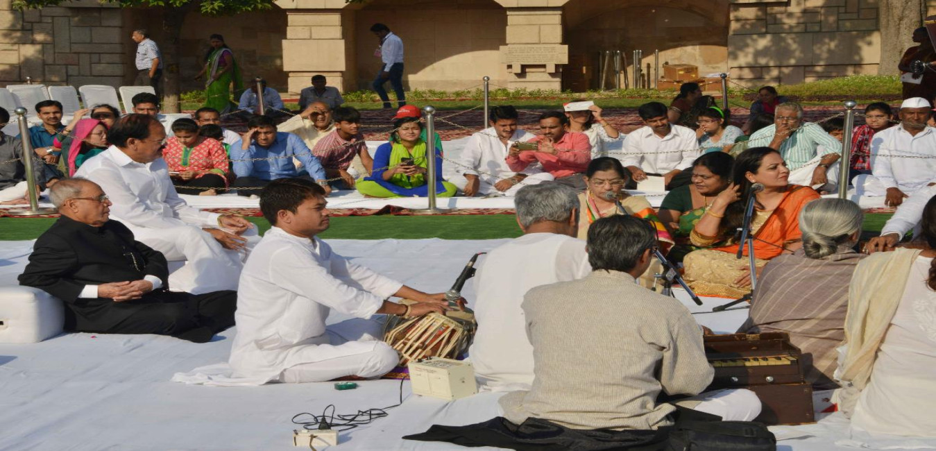 The President of India, Shri Pranab Mukherjee paying floral tributes at the Samadhi of Late Pandit Jawaharlal Nehru to Commemorate his Birth Anniversary, at Shanti Van, in Delhi on November 14, 2015.