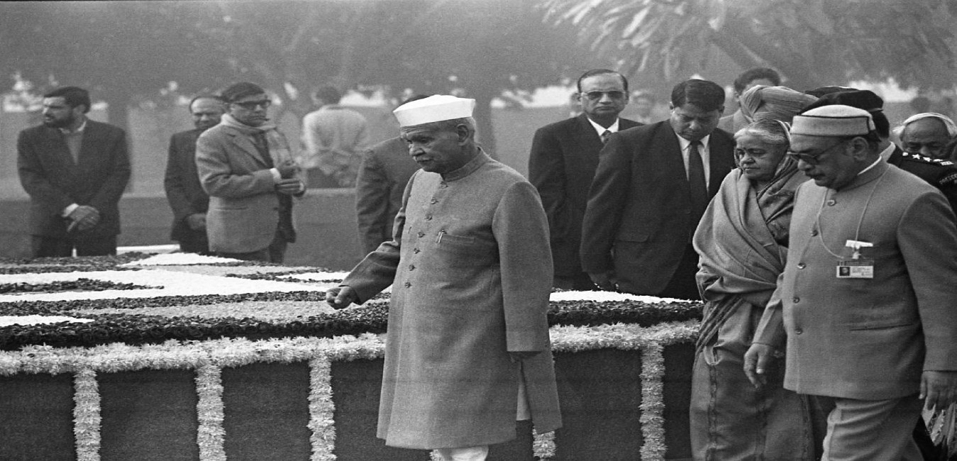 The President of India, Dr. Shankar Dayal Sharma paying homage at the Samadhi of Shri Lal Bahadur Shastri on the occasion of his Birth Anniversary, at Vijay Ghat in Delhi on October 02, 1996.