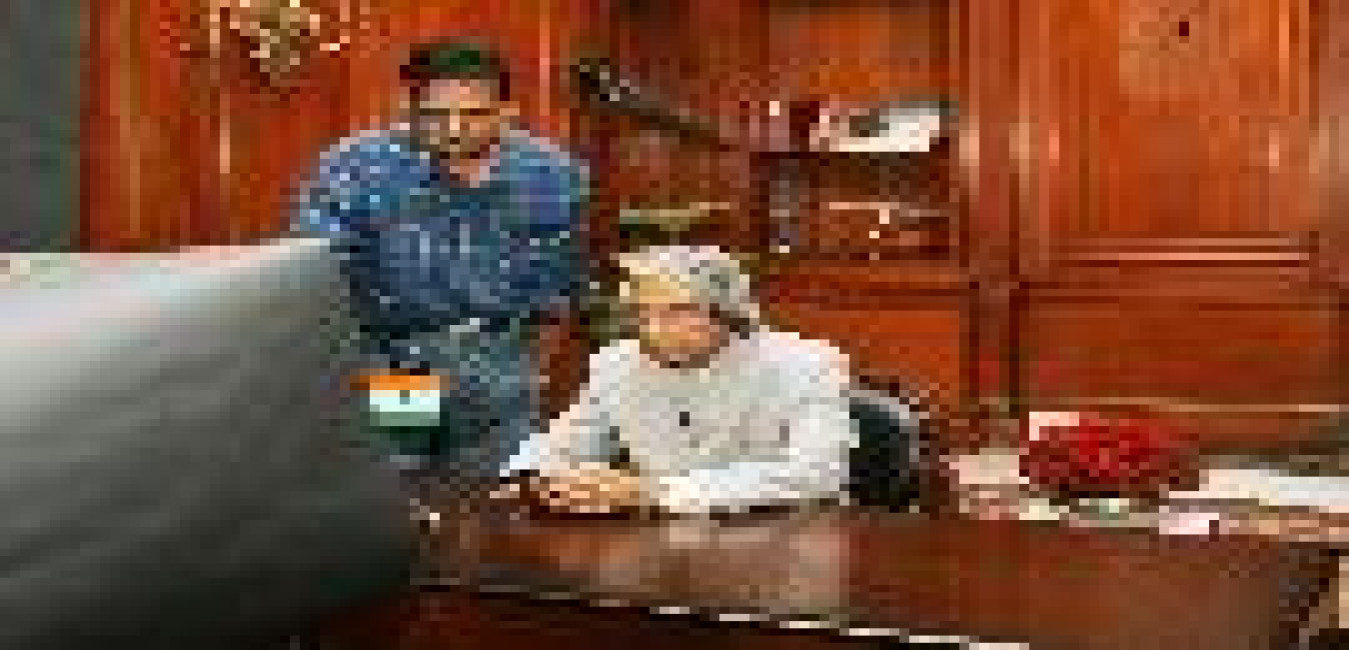 The President of India, Dr A P J Abdul Kalam with Dr R K Tewari, Professor, Dept of Electronics & Communications Engineering, Maharaaj Surajmal Institute of Technology to present the Book "Anti-Susmarine Warfare : Fighting the Invisible Enemy" at Rashtrapati Bhavan in New Delhi on May 22, 2006