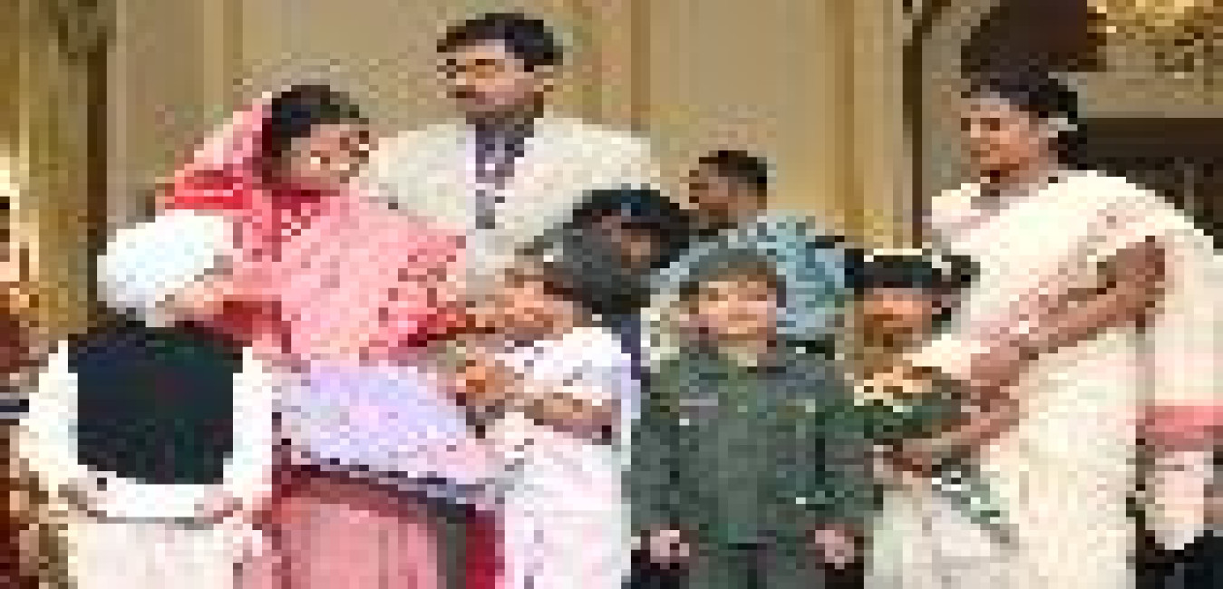 The President of India, Smt Pratibha Devisingh Patil being tied a Rakhi by children on the occasion of Raksha Bandhan at Rashtrapati Bhavan in New Delhi on Aug 16, 2008