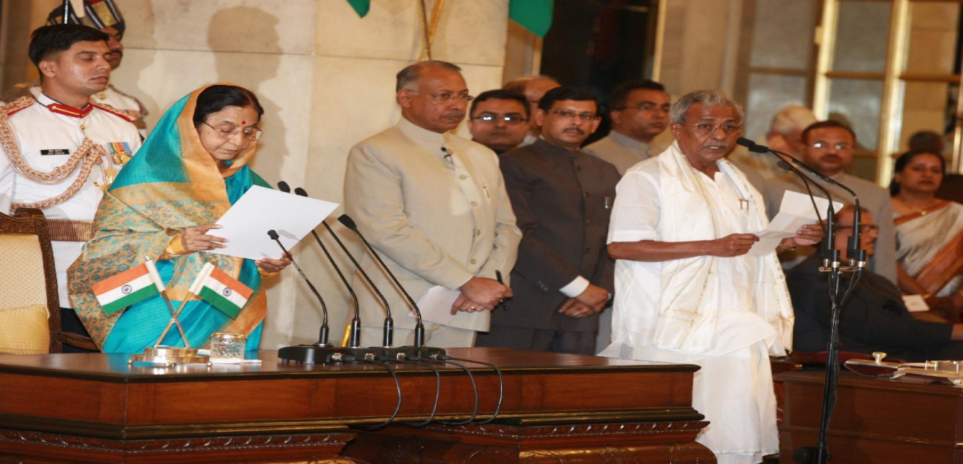 The President of India, Smt Pratibha Devisingh Patil administering the oath of Protem Speaker to Shri Manikrao Gavit at a Swearing-in-Ceremony at Rashtrapati Bhavan in New Delhi on June 1, 2009