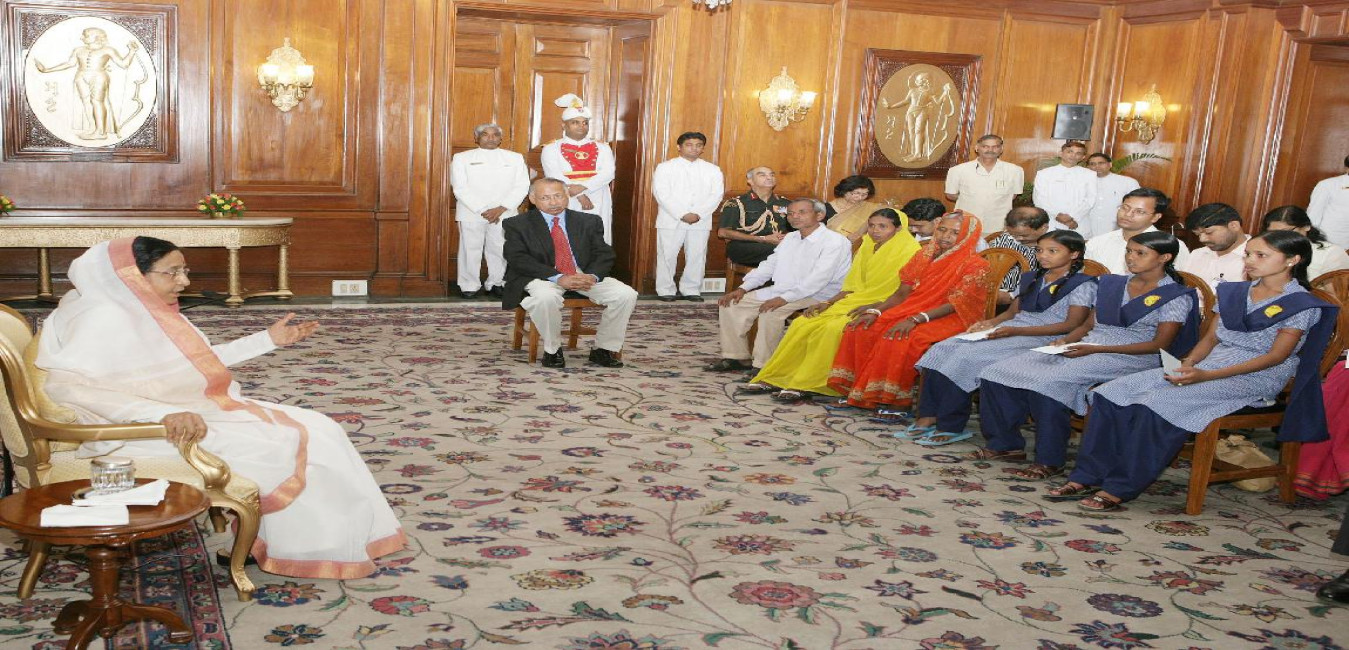 The President of India, Smt Pratibha Devisingh Patil interacting with Shri Anil Kumar and others at Rashtrapati Bhavan in New Delhi on July 02, 2009