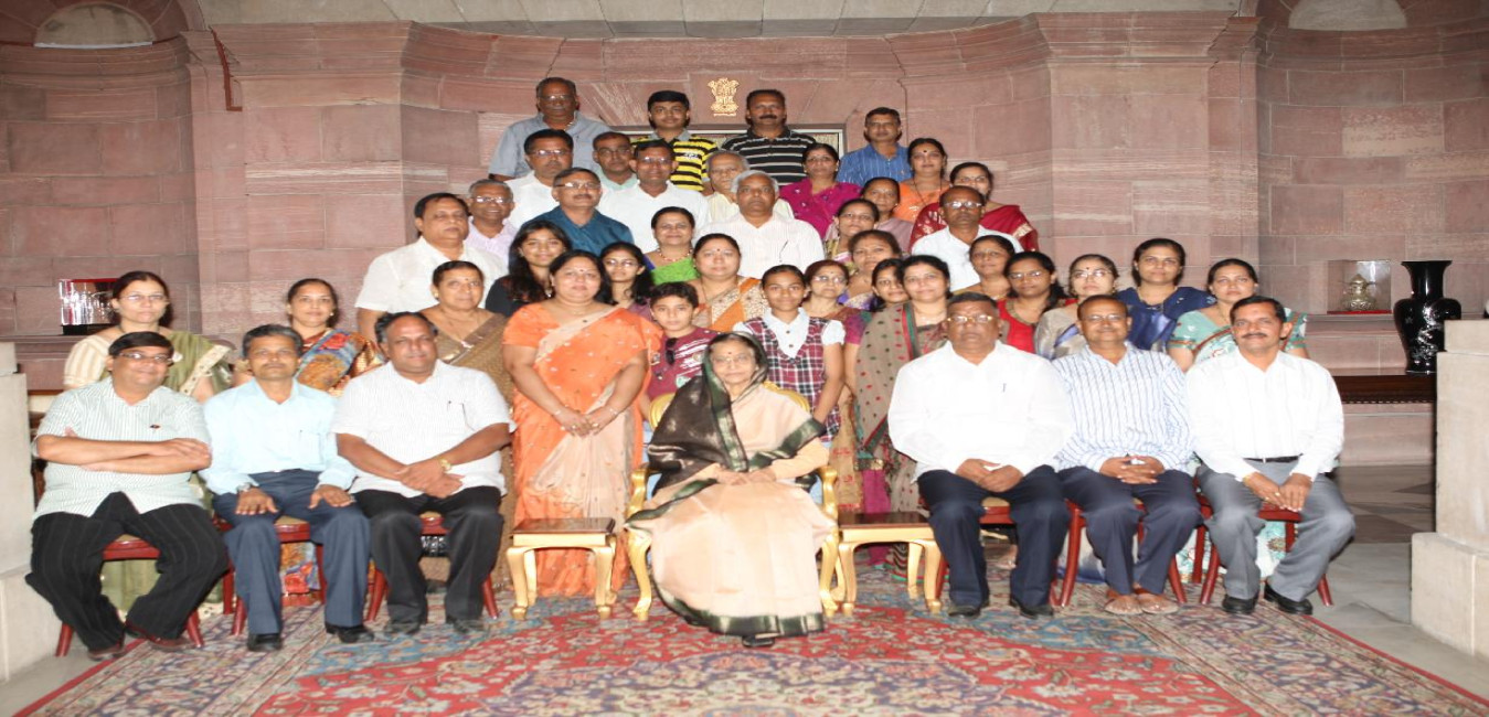 The President of India, Smt Pratibha Devisingh Patil interacting with Dr Arvind Govindrao Malpe and others at Rashtrapati Bhavan in New Delhi on Aug 09, 2010