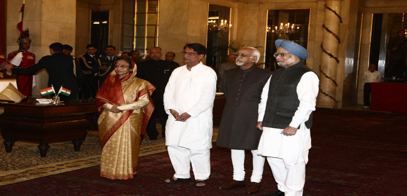 The President of India, Smt Pratibha Devisingh Patil administering the oath as Cabinet Minister to Shri Ajit Singh at a Swearing-in-Ceremony at Rashtrapati Bhavan in New Delhi on Dec 18, 2011