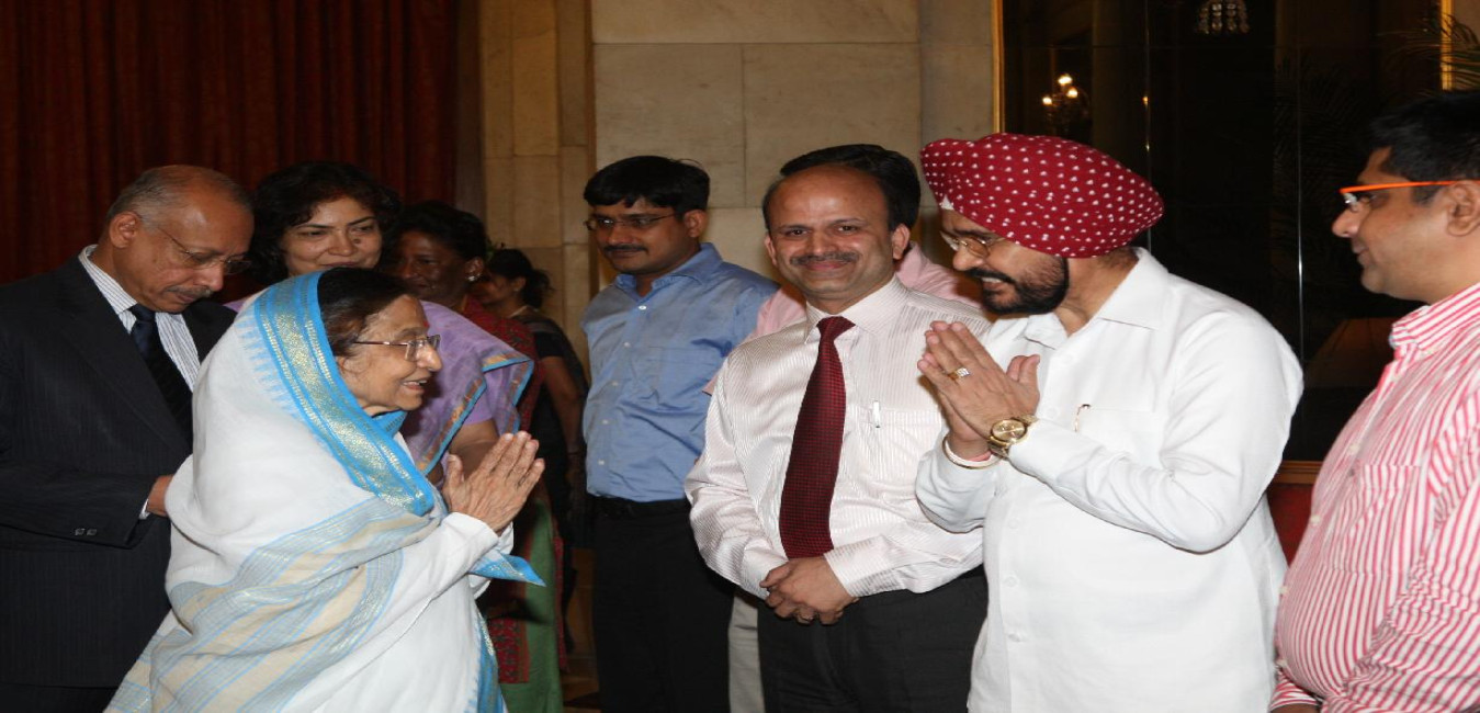 The President of India, Smt Pratibha Devisingh Patil interacting with Shri Pravin Deshmukh and others at Rashtrapati Bhavan in New Delhi on July 10, 2012