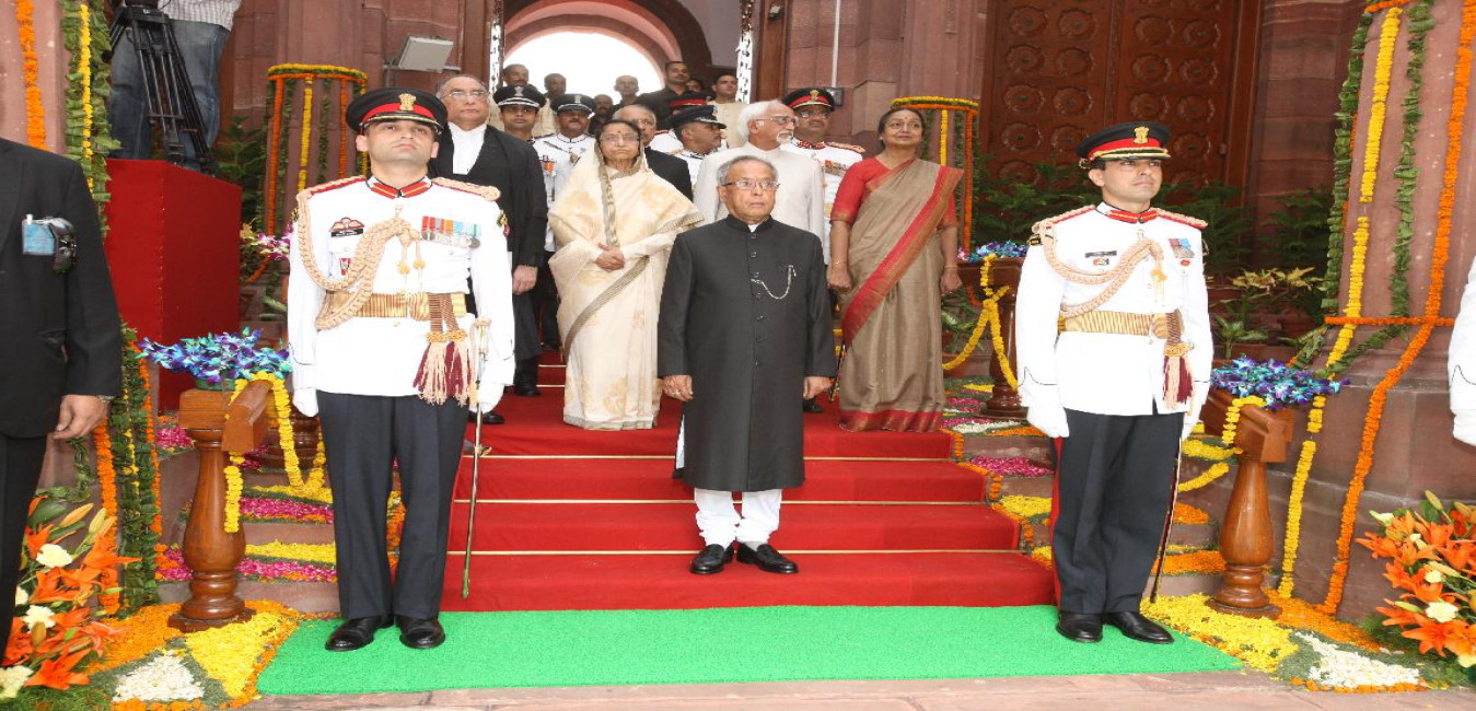 The Elect President, Shri Pranab Mukherjee arriving at Rashtrapati Bhavan on the occasion of Swearing-in-Ceremony on July 25, 2012