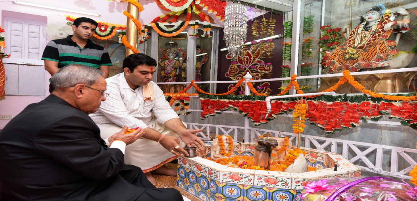 The President of India, Shri Pranab Mukherjee visiting at Shiv Mandir on the occasion of Janamashtami at President's Estate in New Delhi on August 18, 2014