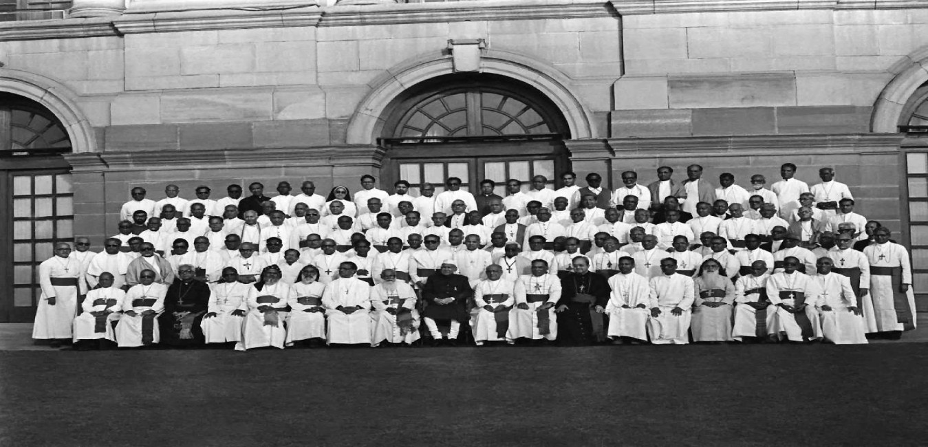 The President of India, Dr. Shankar Dayal Sharma meeting with the Bishops attending the Golden Jubilee Celebrations of the CBCI at Rashtrapati Bhavan in New Delhi on March 01, 1994.