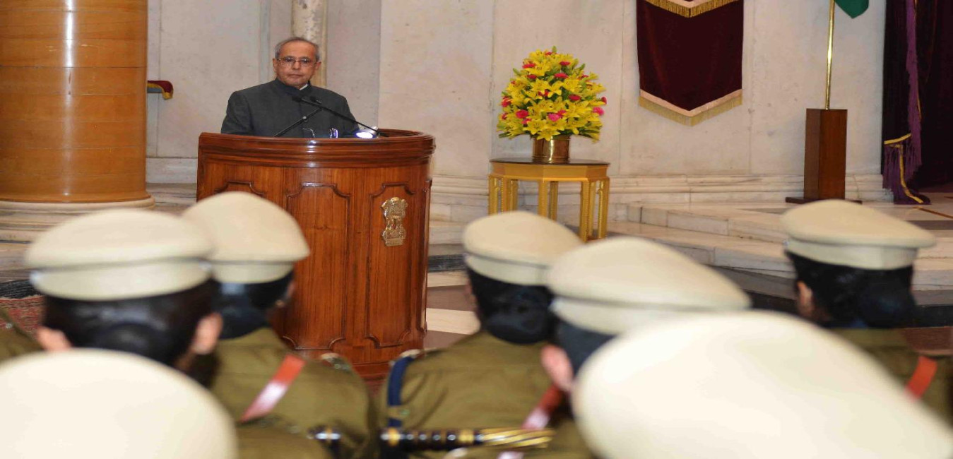 Officer Trainees of 67RR (2014 Batch) of Indian Police Service from Sardar Vallabhbhai Patel National Police Academy, Hyderabad calling on the President of India, Shri Pranab Mukherjee, at Rashtrapati Bhavan on November 20, 2015.