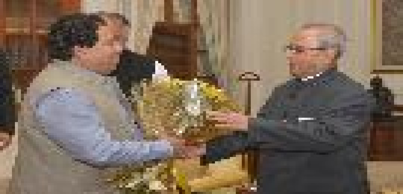 The President of India, Shri Pranab Mukherjee being greeted by the Minister of State for Road Transport and Highways, Shri Pon. Radhakrishnan on the occasion of his 80th birthday, at Rashtrapati Bhavan on December 11, 2015 .