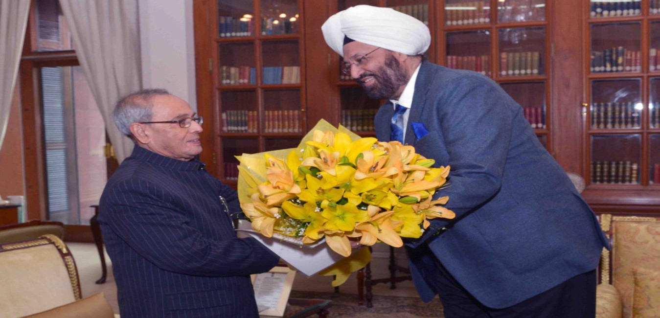 The President of India, Shri Pranab Mukherjee meeting with Dr. Nandini Sharma, Dr. Kalyan Banerjee and Dr. SPS Bakshi, at Rashtrapati Bhavan on January 20, 2016.
