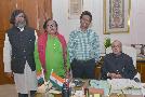 The President of India, Shri Pranab Mukherjee meeting with Smt. Mallika Nadda, wife of Shri JP Nadda, Minister of Health & Family Welfare alongwith her mother Smt. Jaishree Banerjee, Ex-MP, at Rashtrapati Bhavan on February 22, 2016.