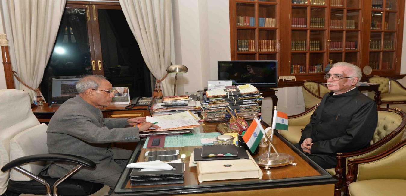 The President of India, Shri Pranab Mukherjee meeting with Prof. Yogesh Tyagi, Vice Chancellor-designate, University of Delhi, at Rashtrapati Bhavan on March 02, 2016.