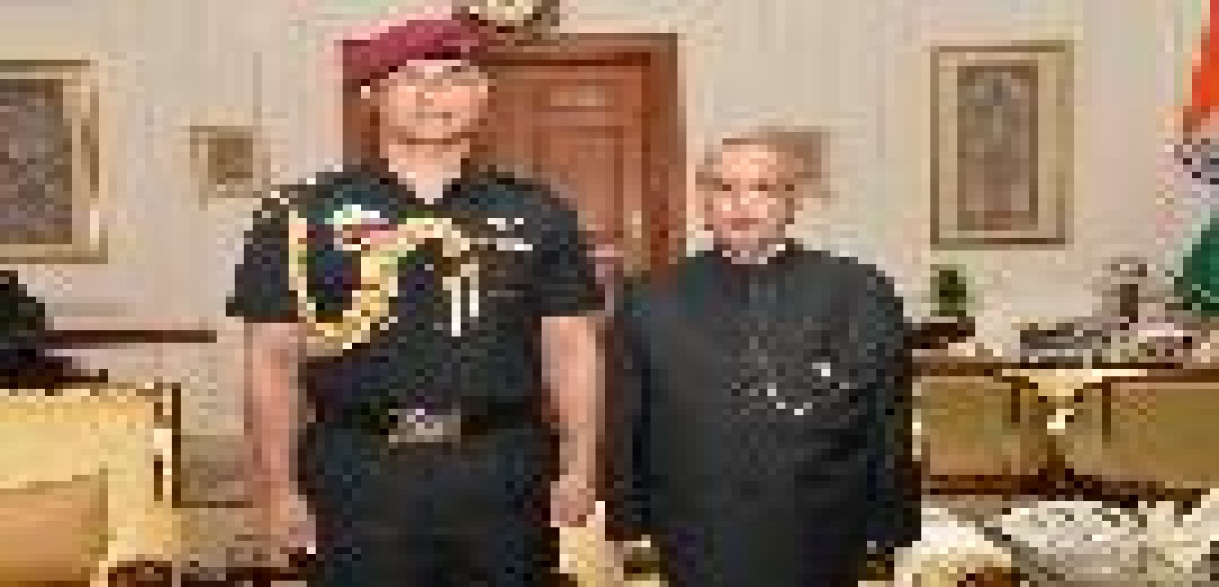 The President of India, Shri Pranab Mukherjee meeting with Capt. Gaurav Chaudhury, ADC to the President, at Rashtrapati Bhavan on March 10, 2016.