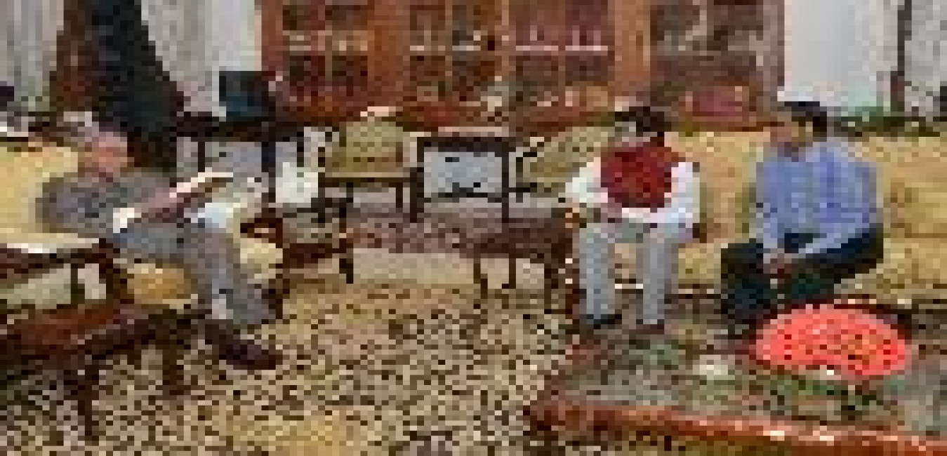 The President of India, Shri Pranab Mukherjee meeting with Shri Sukhbir Sharma, Vice President, Delhi Pradesh Congress Committee and Shri Praveen Aggarwal, at Rashtrapati Bhavan on May 30, 2016.