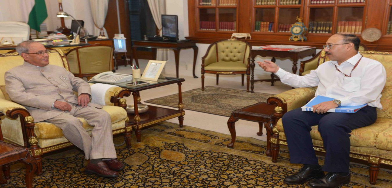 The President of India, Shri Pranab Mukherjee meeting with Shri Manoj Chauhan, at Rashtrapati Bhavan on June 30, 2016.
