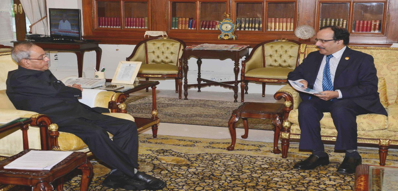 The President of India, Shri Pranab Mukherjee meeting with Shri Malay Mukherjee, CEO & Managing Director, IFCI Limited, at Rashtrapati Bhavan on July 19, 2016.