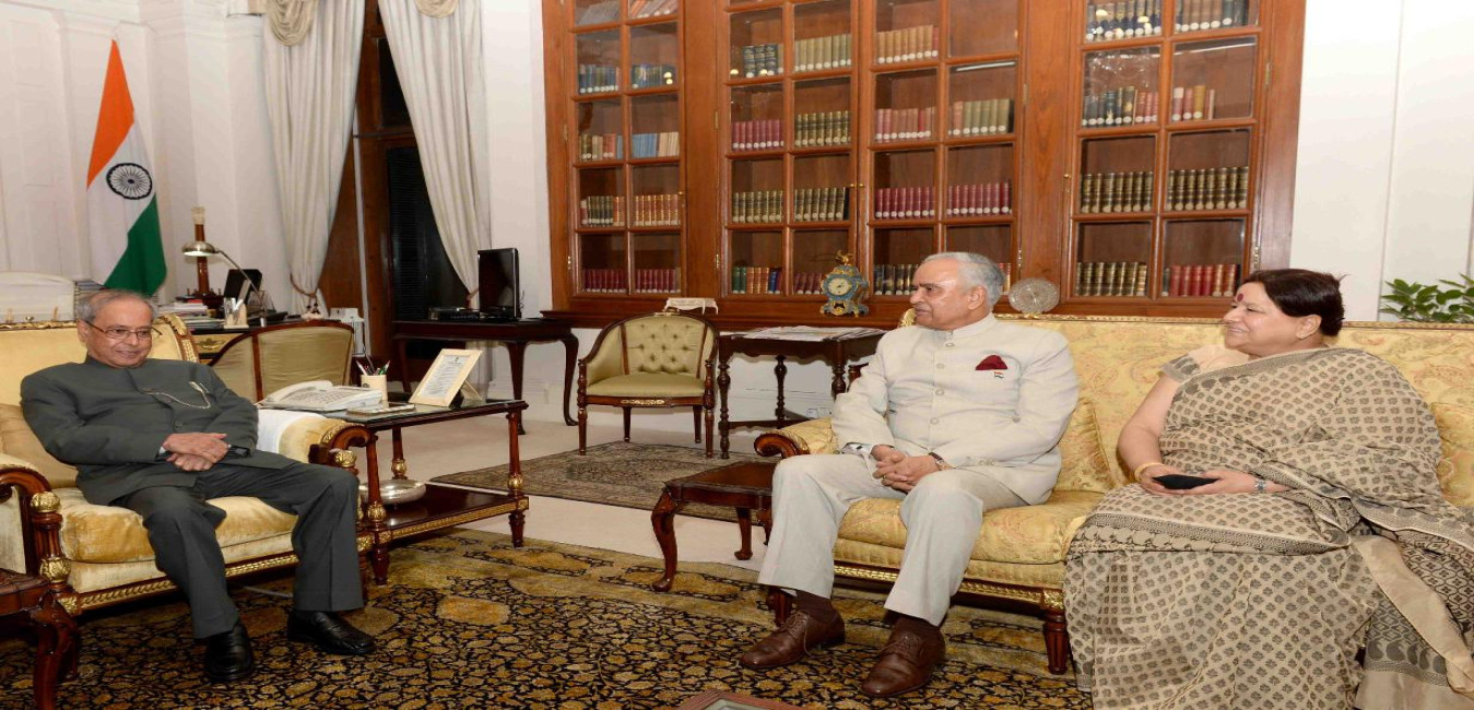 The President of India, Shri Pranab Mukherjee meeting with Lt. Gen. (Retd) Nirbhay Sharma, Governor of Mizoram, at Rashtrapati Bhavan on July 27, 2016.