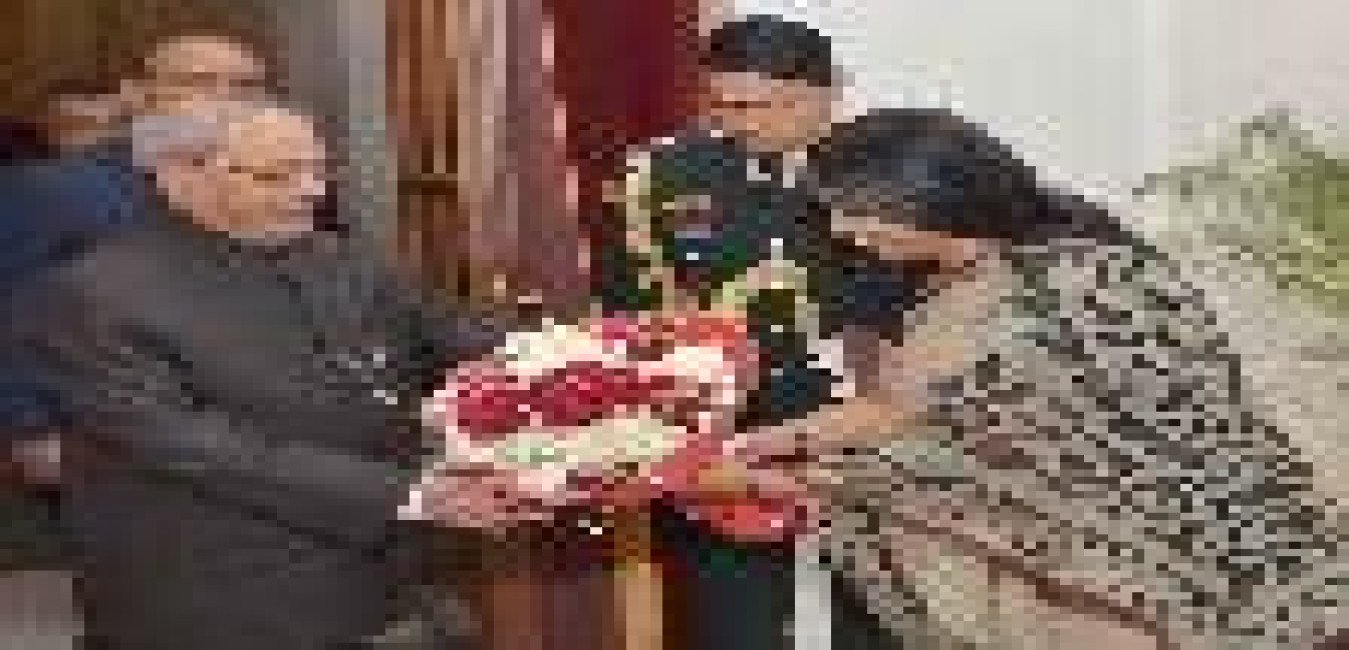 The President of India, Shri Pranab Mukherjee meeting with Lt. Gen S.K. Gadeock, AVSM (Retd), former Commandant, Defence Services Staff College, Wellington along with his wife Smt. Sonalika Gadeock, at Rashtrapati Bhavan on February 09, 2017.