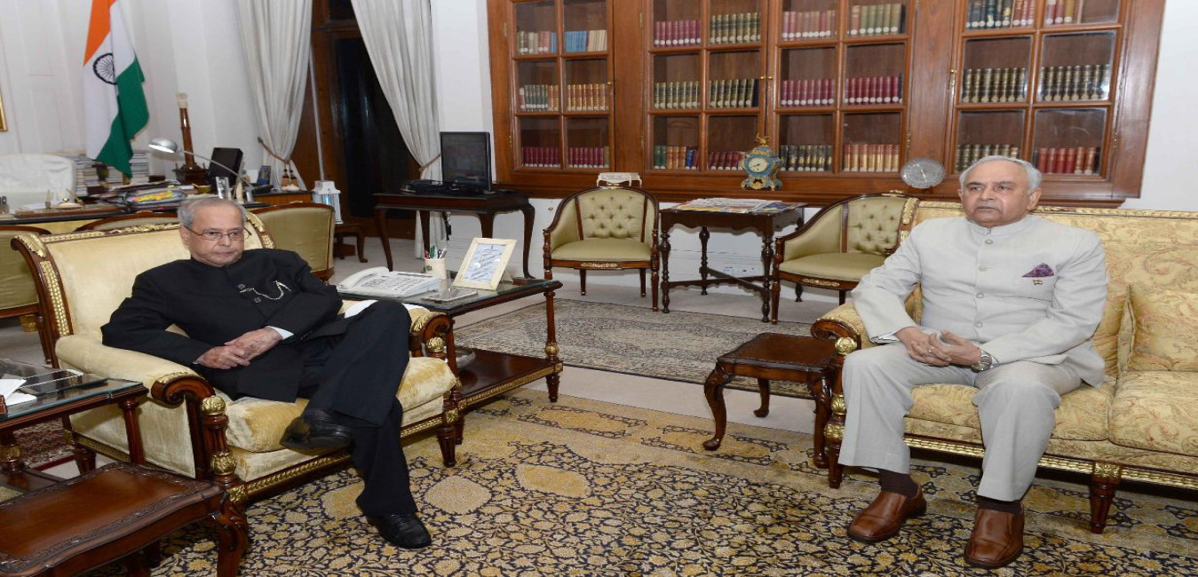 The Governor of Mizoram, Lt. Gen. Nirbhay Sharma calling on the President of India, Shri Pranab Mukherjee, at Rashtrapati Bhavan on March 22, 2017.
