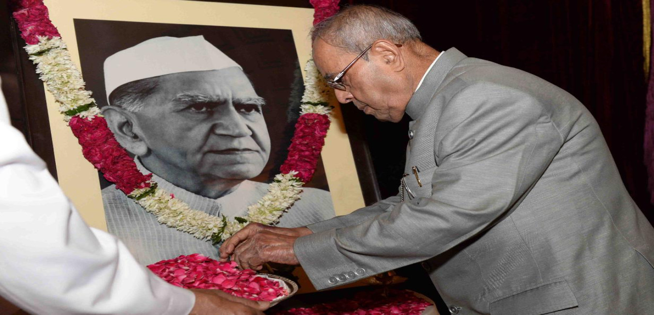 The President of India, Shri Pranab Mukherjee paying floral tributes at the portrait of Shri Fakhruddin Ali Ahmed, former President of India on the occasion of his birth anniversary, at Rashtrapati Bhavan on May 13, 2017.