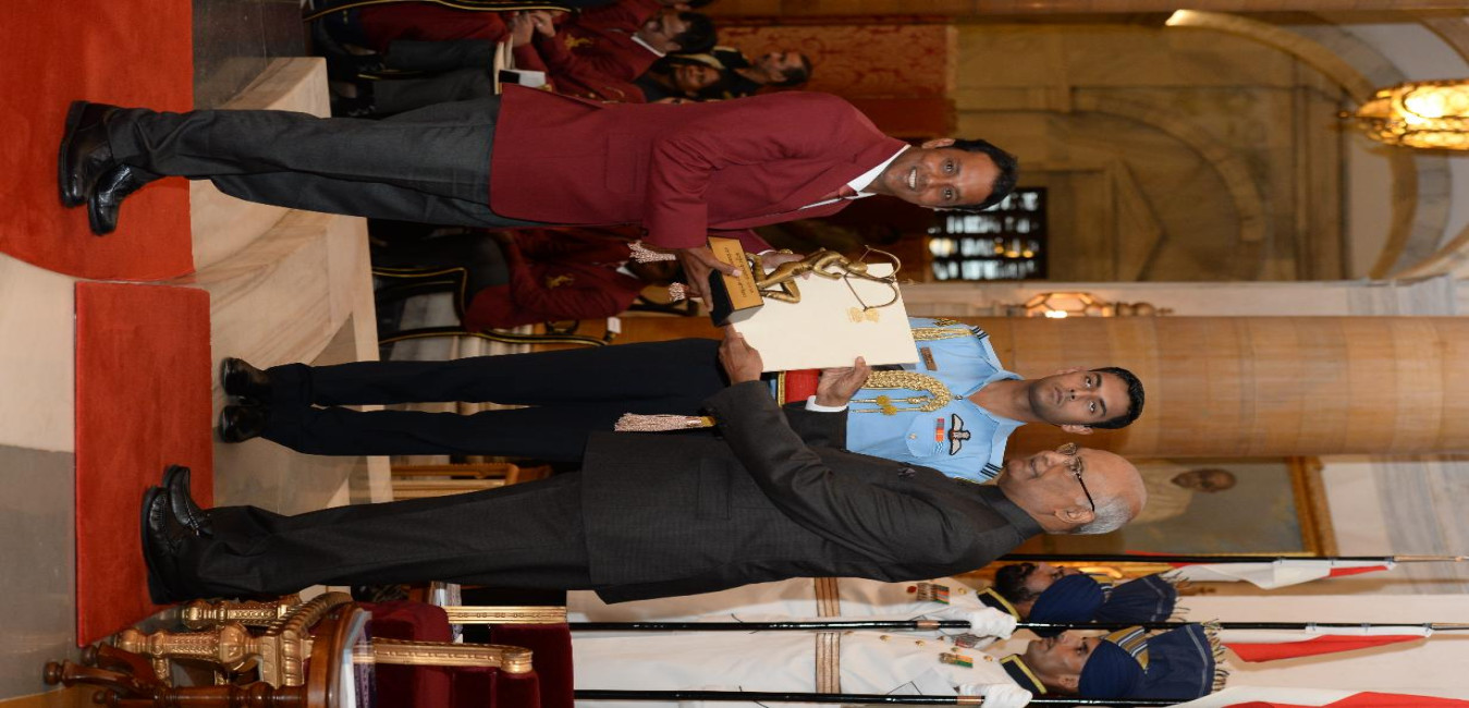 The President of India, Shri Ram Nath Kovind presenting the Rajiv Gandhi Khel Ratna Awards 2017 to Shri Sardar Singh and Shri Devendra, at the National Sports & Adventure Awards function, at Rashtrapati Bhavan on August 29, 2017.