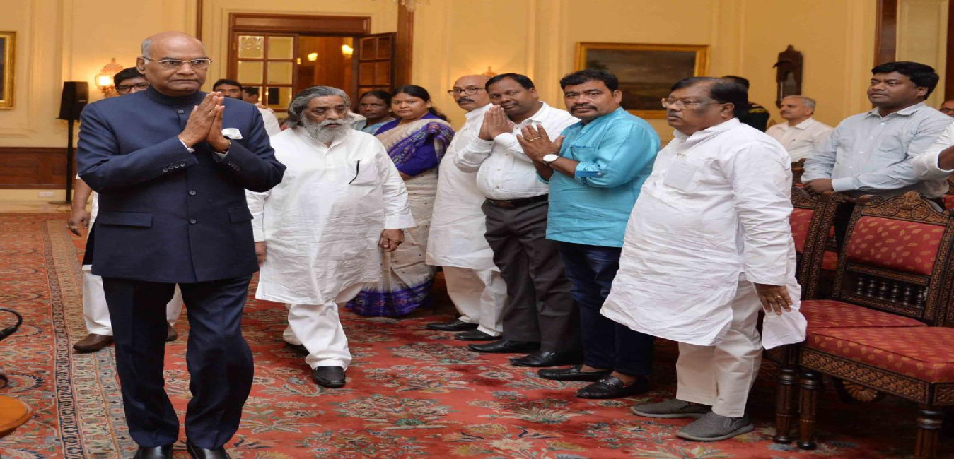 A delegation of MPs, MLAs & Leaders of Jharkhand Mukti Morcha led by Shri Shibu Soren, MP (LS) & President, Jharkhand Mukti Morcha meeting with the President of India, Shri Ram Nath Kovind, at Rashtrapati Bhavan on September 19, 2017.