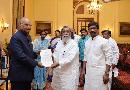 Shri D.V. Swami & Shri M.V. Das Swami from Akshardham Temple, Delhi meeting with the President of India, Shri Ram Nath Kovind, at Rashtrapati Bhavan on September 20, 2017.