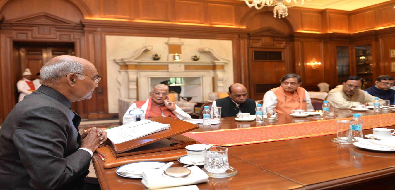 The Leader of Opposition, Rajya Sabha, Shri Ghulam Nabi Azad along with leaders of various opposition political parties meeting with the President of India, Shri Ram Nath Kovind, at Rashtrapati Bhavan on March 28, 2018.