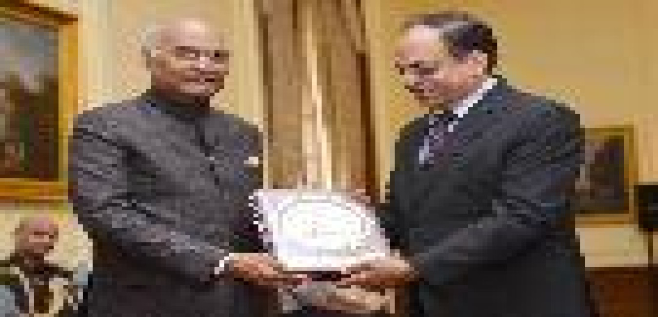 Shri Santosh Taneja along with Shri R.S. Gupta, President and Shri Ravi Bansal, Secretary, Sankalp and Shri Raj Kumar Bhatia meeting with the President of India, Shri Ram Nath Kovind, at Rashtrapati Bhavan on March 28, 2018.